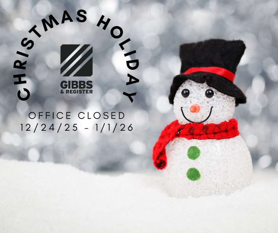 Gibbs & Register will be closed beginning December 24th – January 1, 2026 in observance of the Christmas and New...